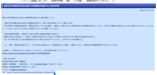 中国政府は日本は危ない国なので、同国民に対して「行くな」と注意喚起し出しました、万事穏…