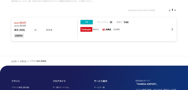 色々の情報がございますが 本日2026年3月13日(金)の羽田➡︎ドバイ…
