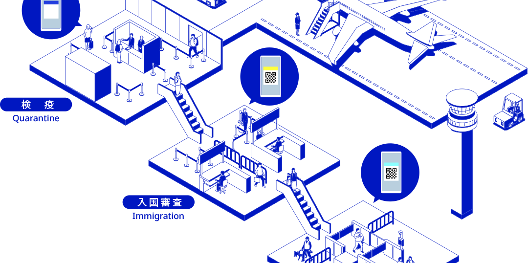 入国手続き「検疫」、「入国審査」、「税関申告」、「免税購入」をウェブで行うことができるサービスです。