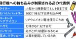 なかなか分かりづらい制限対象だが、国交省は判別するための代表例をリスト化して紹介しており、航空会社もリストを作成している。