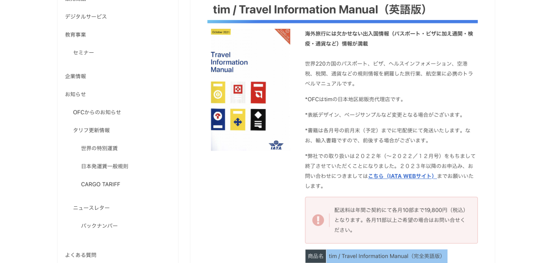 *取り扱いは2022年(~2022/12月号)をもちまして終了させていただくことになりました。2023年以降のお申込み、お問い合わせにつきましてはこちら(IATA WEBサイト)までお願いいたします。