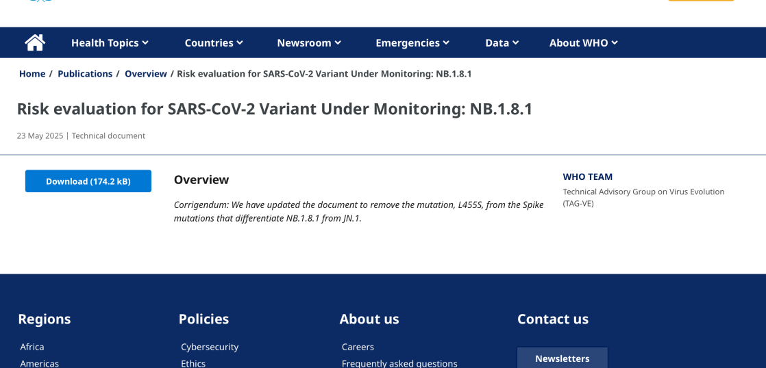 通称Nimbus(ニンバス)が新型コロナの変種、世界保健機関(WHO)では以下の通り、2025年5月下旬から監視対象の新型コロナとして観察している様ですが、ここに来て日本では流行り出している感