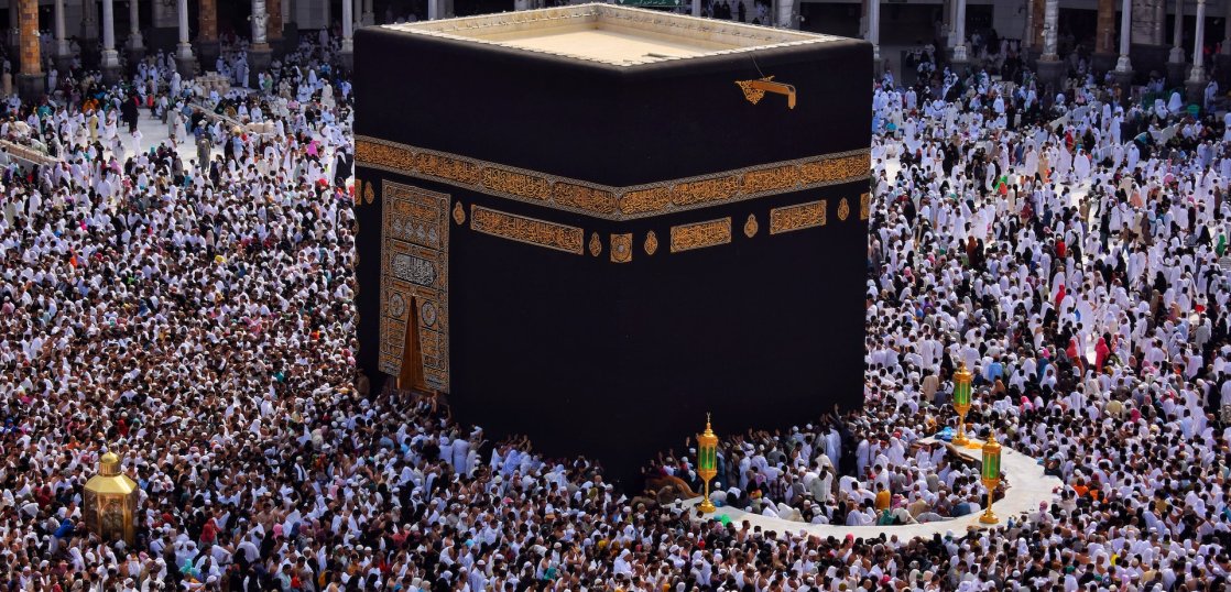 資金の点から、そして身体の点から巡礼が可能なイスラム教徒はみな、生涯に一度、現在のサウジアラビアの西部にあるメッカのカーバ神殿に足を運ぶことが義務付けられています。イスラム教徒は、カーバ神殿の方角、キブラに向かって礼拝を行います。つまり、世界のどこにいても、カーバ神殿に向かって礼拝をするのです。カーバ神殿はイスラム教の出現以前、神の命により、預言者イブラーヒームによって新たに建てられ、その後、ここは唯一神信仰にとっての象徴的な場所となっています。カーバ神殿は四角形で、黒い石が置かれており、幕で覆われています。興味深いのは、カーバ神殿がイランの純粋なバラ水によって清められていることです。