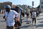 ベネチアの観光名所リアルト橋では31日も大勢の観光客が写真を撮り、アイスをなめながらガラガラとスーツケースを引いて行き交った。ニューヨークから来た旅行者アシュリー・パークさん(28)も「これだけ大勢の観光客と一緒に暮らすのは楽しくはないでしょうね」と認める。