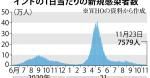 インドで新型コロナウイルスの新規感染者が急減している。5月上旬には1日当たり40万人を超えたが、2021年11月23日には7579人にまで減少した。国民の半数以上がワクチンを1回以上接種したことに加え、国民の多数が感染したことで抗体保有率が高まったことが背景にある