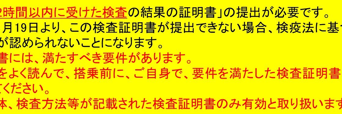日本帰国前72時間以内に日本国が決めている検査方法での検査により陰性である証明書の提出が義務付けられていますが