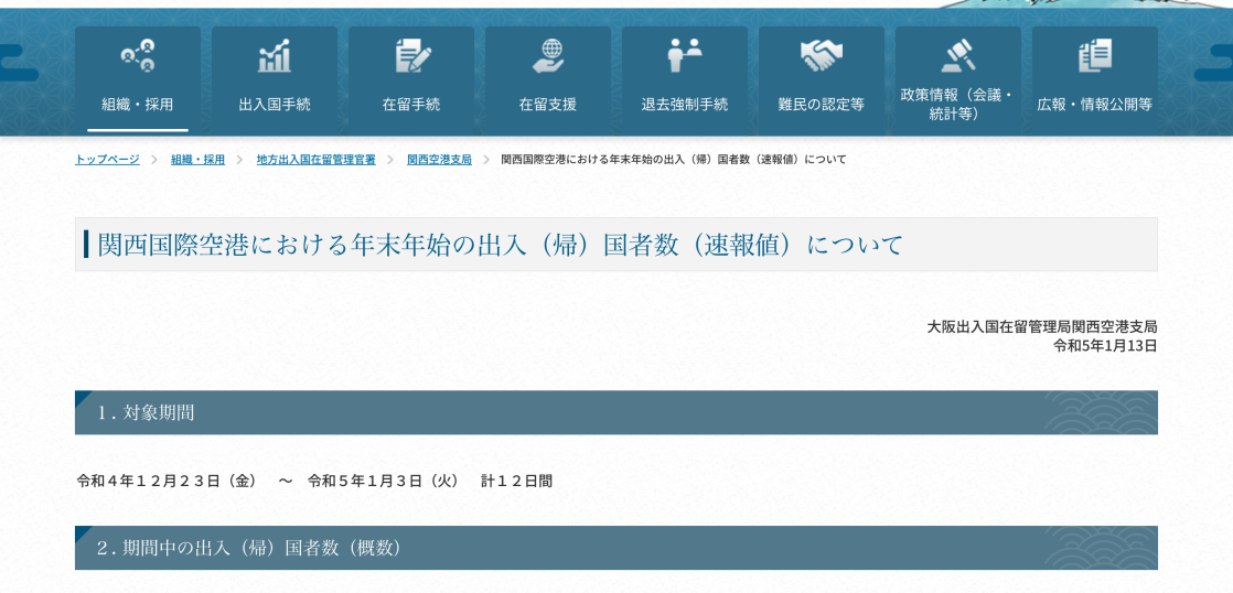 関西国際空港における年末年始の出入(帰)国者数(速報値)について