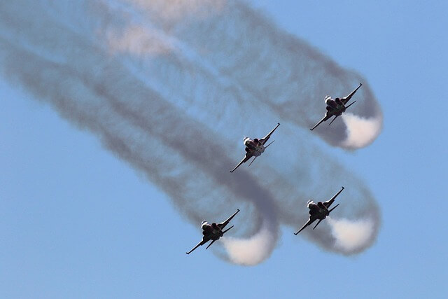 重厚長大、日本の先端産業の象徴の防衛産業の3兄弟の内のふたりが演出する航空ショー(機体は川崎重工製、エンジンは石川島播磨重工業製)