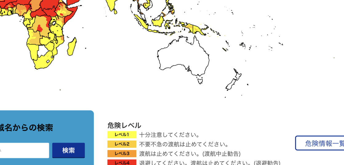 レベル3:柿色:渡航は止めて下さい(渡航中止勧告)