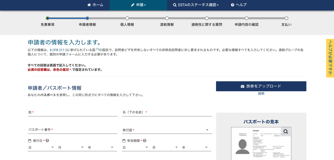 米政府公式ESTA申請サイト(日本語バージョン)