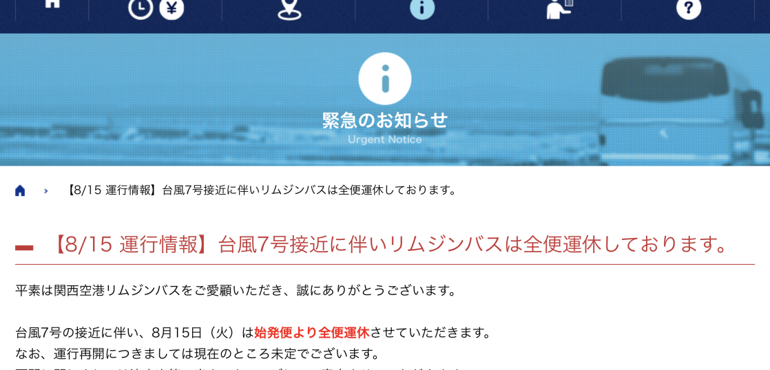 緊急のお知らせ | 【公式】関西国際空港のエアポートリムジンバス・時刻表・のりば...
