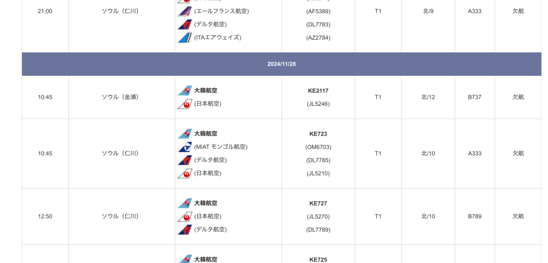 仁川国際空港公社によると、28日午前10時時点で、気象悪化などの理由で乗客を機内に乗せたまま長時間待機させた便は28便あると集計された。