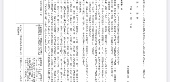 令和2年(2020年)1月28日に政令公布された 【新型コロナウイルス感染症を指定感染…