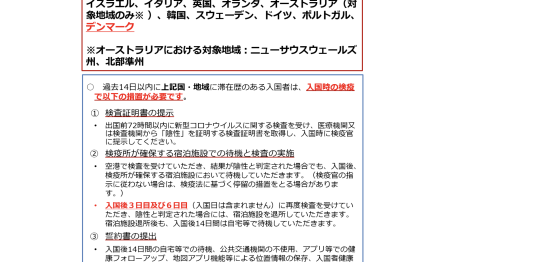 各国への出国それに日本の入国要件・検疫要件は日々チェックはしていますが、チェックするの…