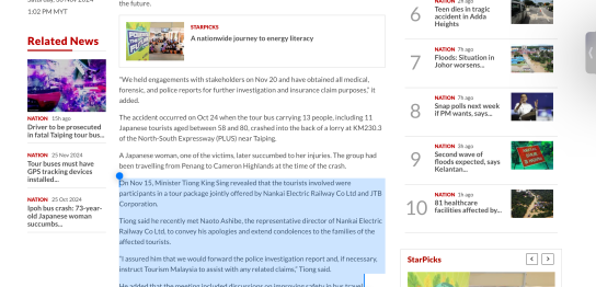 2024年10月24日(木)にマレーシアの高速道路で発生した、日本一の旅行社が企画・主…