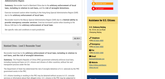米政府機関の米国民向けの旅行の是非を検討させる為のサイトで発出していますね 旅行への危…