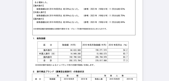 12月は閑散期ではありますが、訪日外人旅行と国内旅行は新型コロナ禍前2019年に、ほぼ…