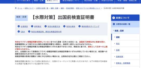 3発以上の有効なワクチン接種証明書 帰国時の検疫措置 旅行先での帰国前検…