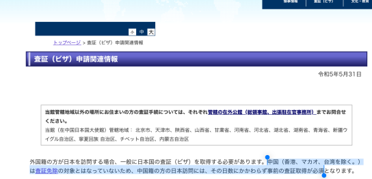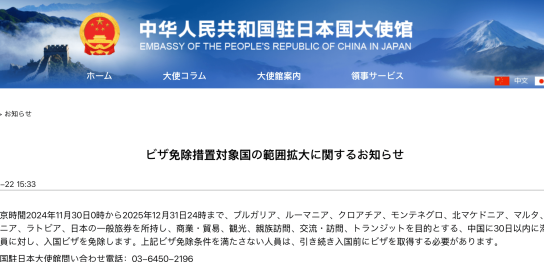 昨年2024年11月30日から中国への旅行には、査証(ビザ)の取得なしに渡航出来る、し…